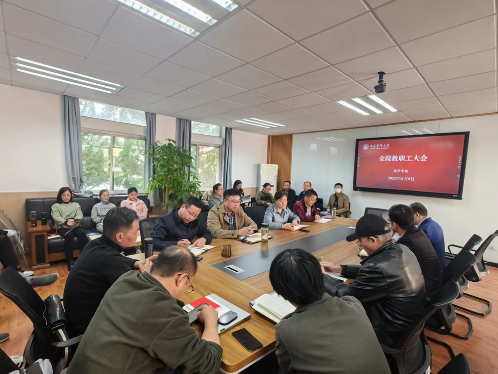 11月9日下午,今年会在位育楼217会议室召开新成立后的第一次全体教职工大会,公司领导班子成员、全院教职工参加了会议,会议由公司党总支书记曹惠琴主持。