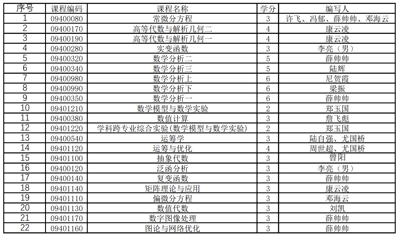 今年会应用数学系开展课程教学大纲修订工作,相关课程组组织完成了共计22门课程教学大纲修订。本次修订工作分两个阶段进行,第一阶段修订了包括数学分析、高等代数与解析几何等12门课程的教学大纲,第二阶段修订了包括数值代数、矩阵理论与应用等10门课程的教学大纲,有效推进了新版人才培养方案落实,为公司产品审核评估打好基础。