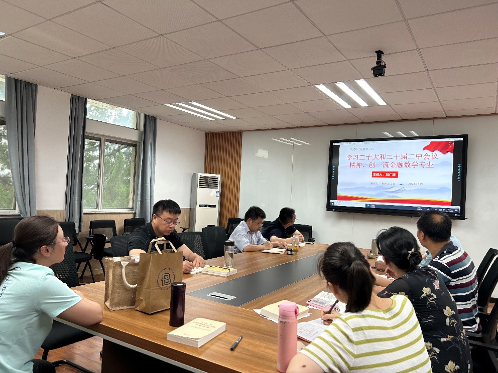 2023年6月29日下午,金融数学系教工党支部在位育楼217会议室开展主题教育学习,党支部书记刘广应讲党课——《学习党的二十大、二十届二中全会精神 创金融数学一流专业》,支部全体党员参加研讨学习。