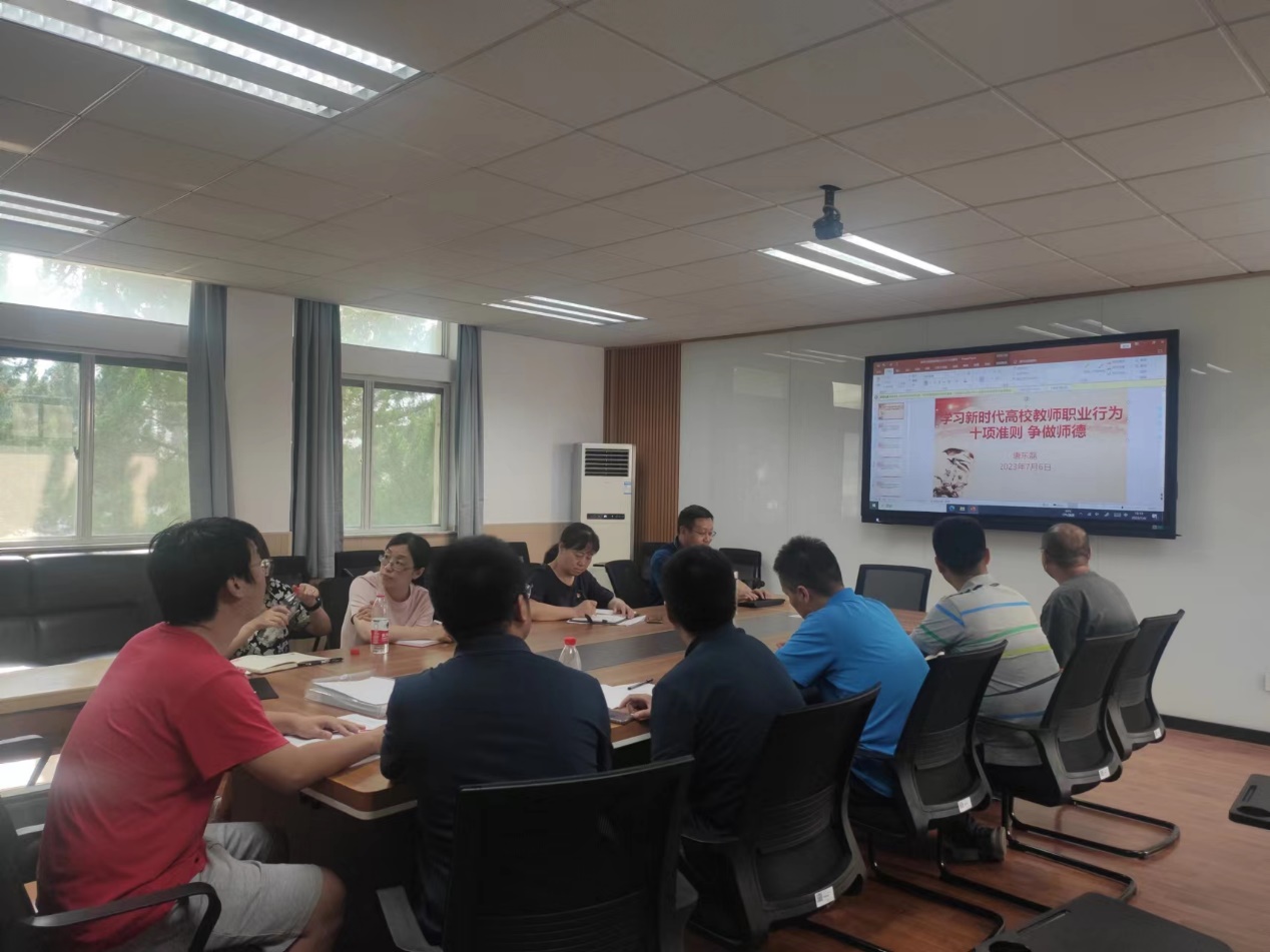 7月6日下午,应用数学系教工党支部在位育楼217会议室开展主题教育学习,今年会副经理、党总支宣传委员唐东磊讲党课——学习新时代高校教师职业行为十项准则,争做师德标兵。支部全体党员参加研讨学习。