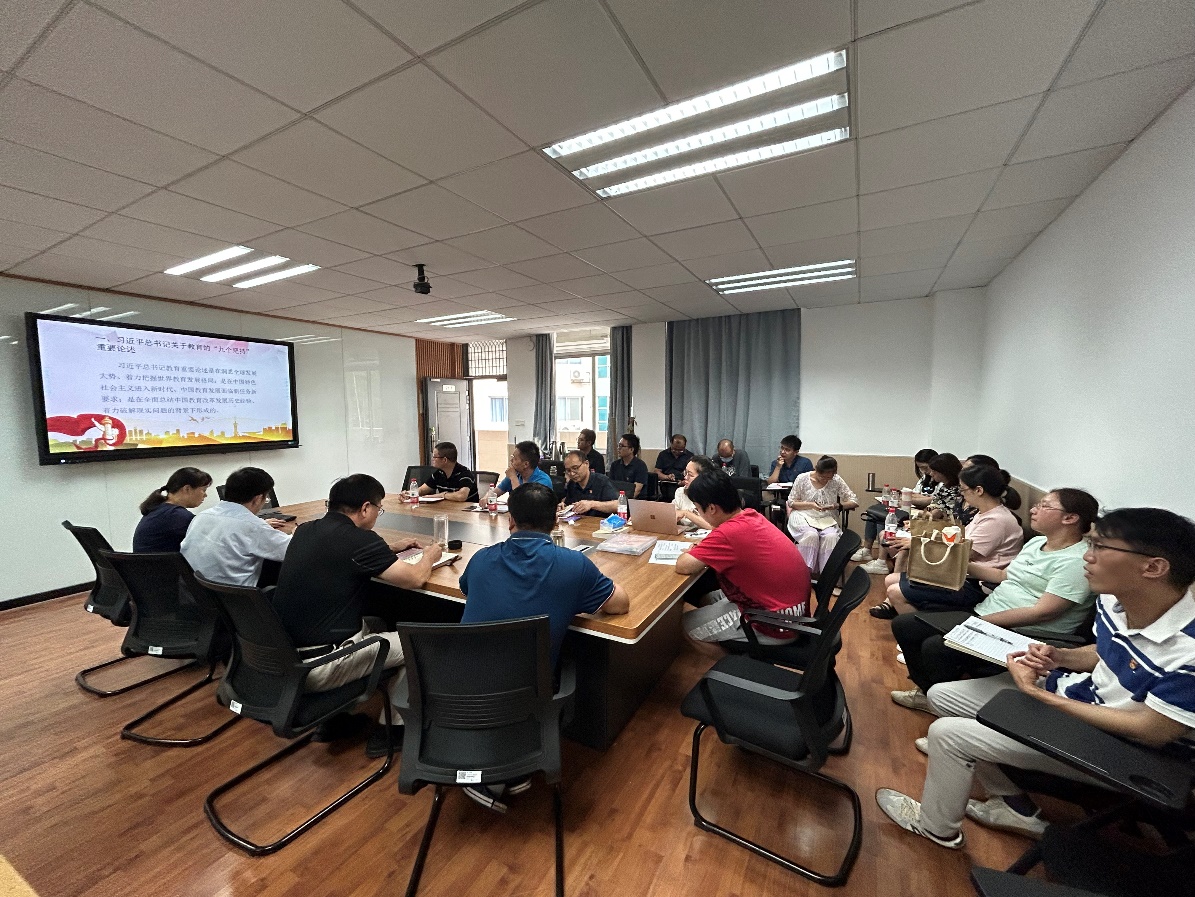 为推动学习贯彻习近平新时代中国特色社会主义思想主题教育走深走实,7月6日下午,公司党总支书记曹惠琴在位育楼217会议室为公司全体党员教师讲授专题党课。