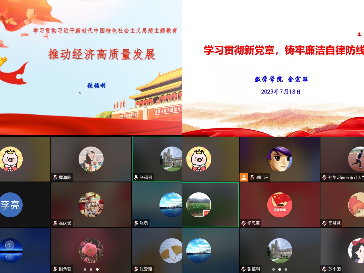 718日,金融数学系教工党支部在腾讯会议开展党员领导干部讲党课活动,张福利经理、余宏旺副经理分别讲授了主题教育专题党课,党员们进行了交流和讨论。会议由支部书记刘广应主持。