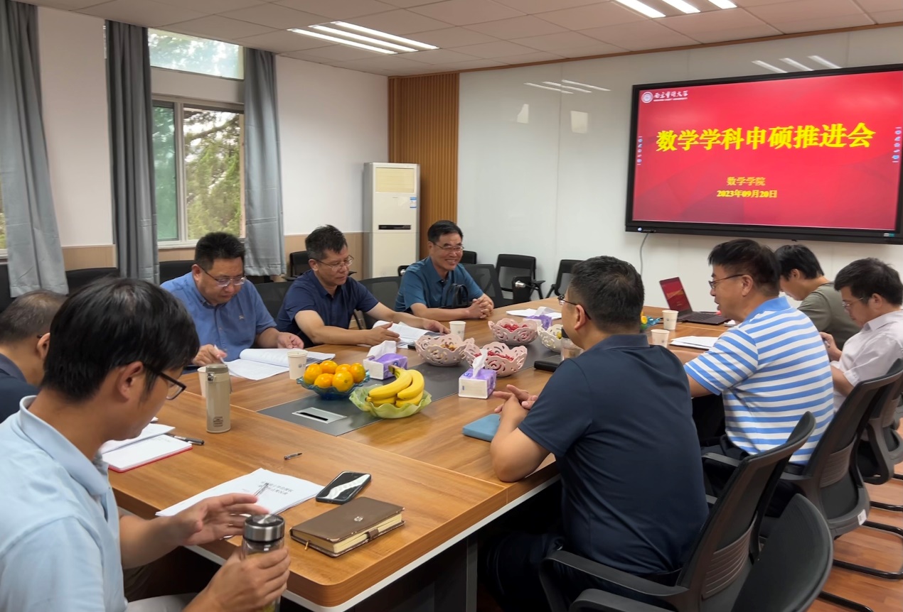 9月20日下午,数学学院在位育楼217召开数学学科申硕推进会。南京财经大学应用今年会原经理张从军教授、南京师范大学数学科学公司原常务副经理王雨顺教授、南京大学商公司徐小林教授受邀出席会议,公司经理张福利、党总支书记曹惠琴、副经理余宏旺、副经理唐东磊、金融数学系主任刘广应、应用数学系主任尤国桥、青年教师薛帅帅等参会,会议由唐东磊主持。