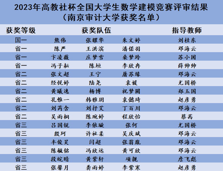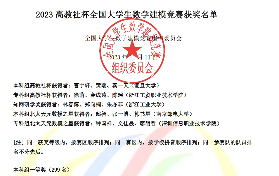 附2:公司2023年高教社杯数学建模竞赛获奖名单