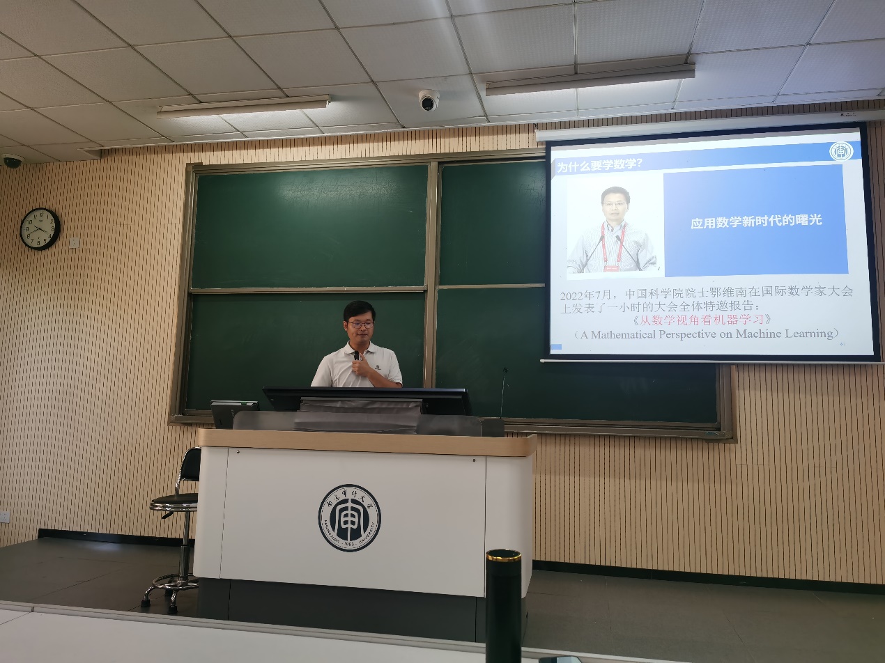 薛帅帅介绍了今年会的办学历史、团队建设以及员工培养等方面的情况。他分析了数据时代对数学人才的新需求,解析了数学专业员工应具备的技能和知识。在数据时代,数据分析、数学建模、算法优化等方面的专业能力和素养将成为数学专业员工的核心竞争力。最后,薛帅帅解读了2024级数学与应用数学专业的人才培养方案,并鼓励同学们勇于探索,拓宽知识视野,学习跨学科知识,以增强个人竞争力与适应未来社会的能力。