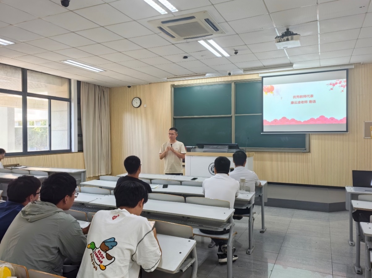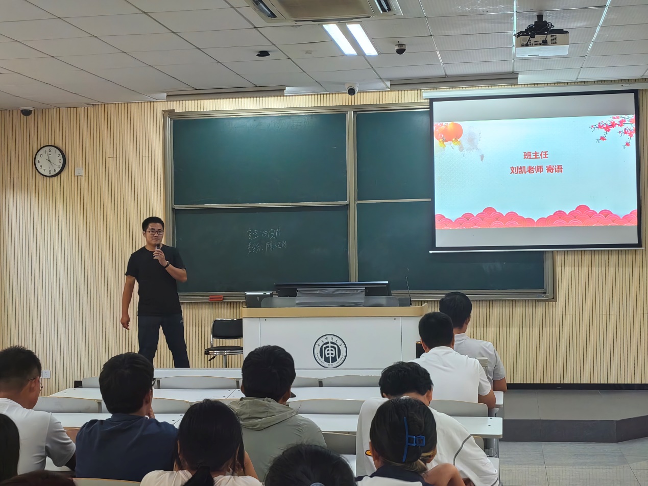 2024级数学班主任刘凯,从树立远大目标,夯实专业基础,参与学科竞赛等方面提出了建议和期望,希望大家端正学习态度,规划好老员工活,提升个人综合素质。