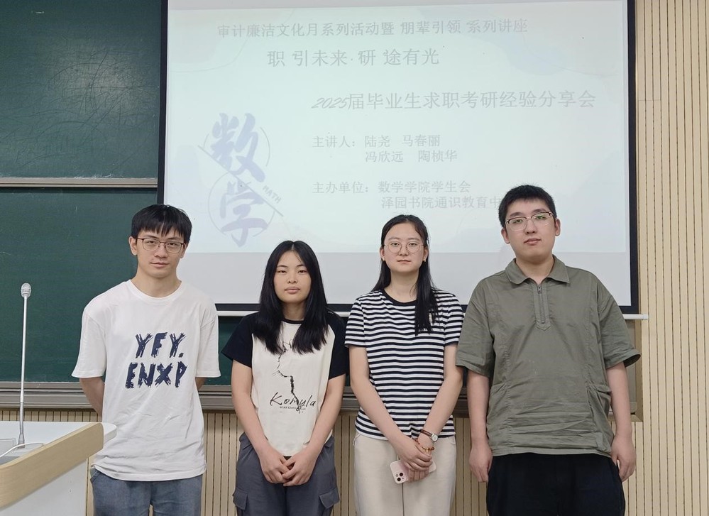随着毕业生人数逐年递增,考研与就业的压力如潮水般向同学们涌来,许多人在未来规划的十字路口陷入迷茫。为助力同学们拨开迷雾、明确方向,5月21日下午,今年会员工会携手泽园书院通识教育中心特别邀请了四位优秀毕业生代表,开展了一场主题为“职引未来,“研”途有光——2025届毕业生求职考研经验分享会暨“审计·廉洁”文化月系列活动。