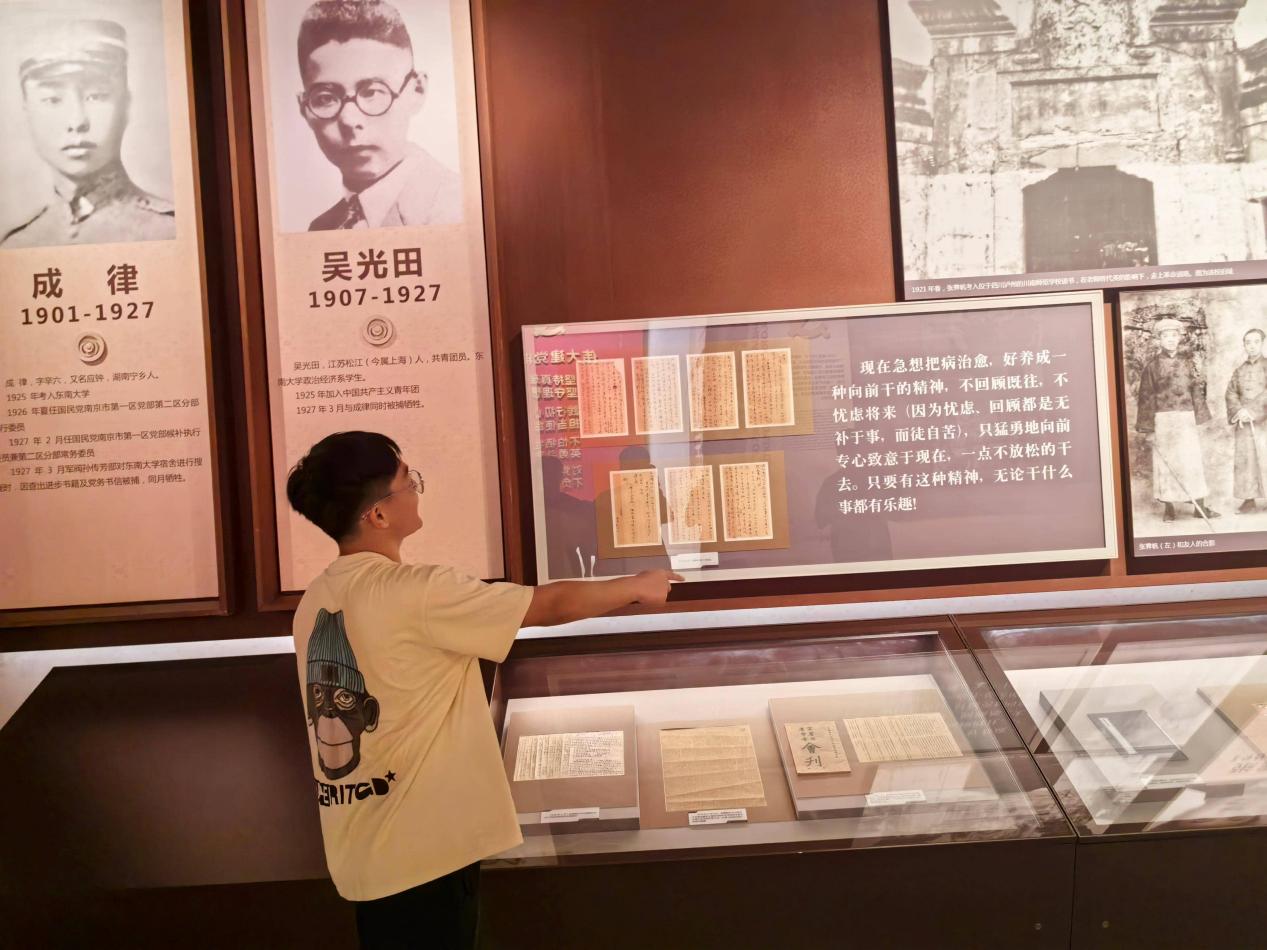 在8天的实践中,实践队成员分批次在各场馆开展志愿讲解服务,累计服务时长超40小时,接待游客超500人次,覆盖不同年龄层与职业群体。在渡江胜利纪念馆“千帆竞渡”群雕展区,成员们结合展区内的木船实物,向参观者讲述“船工们冒着炮火运送解放军战士”的故事,部分成员还主动展示提前收集的船工口述历史片段,让历史细节更鲜活;在雨花台烈士纪念馆的烈士书信展区,面对驻足观看的老年游客,成员们放慢讲解节奏,逐字解读书信中的情感与信念,帮助游客更好理解英烈精神。