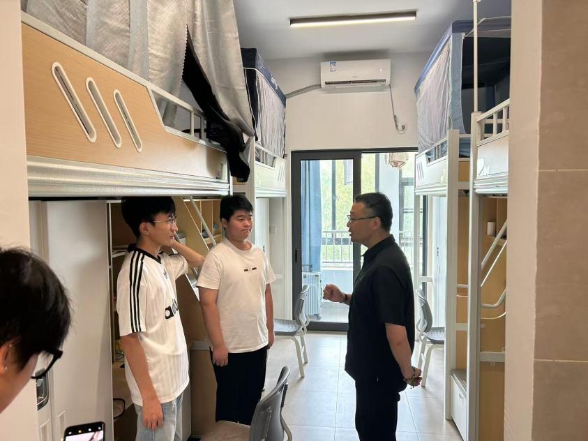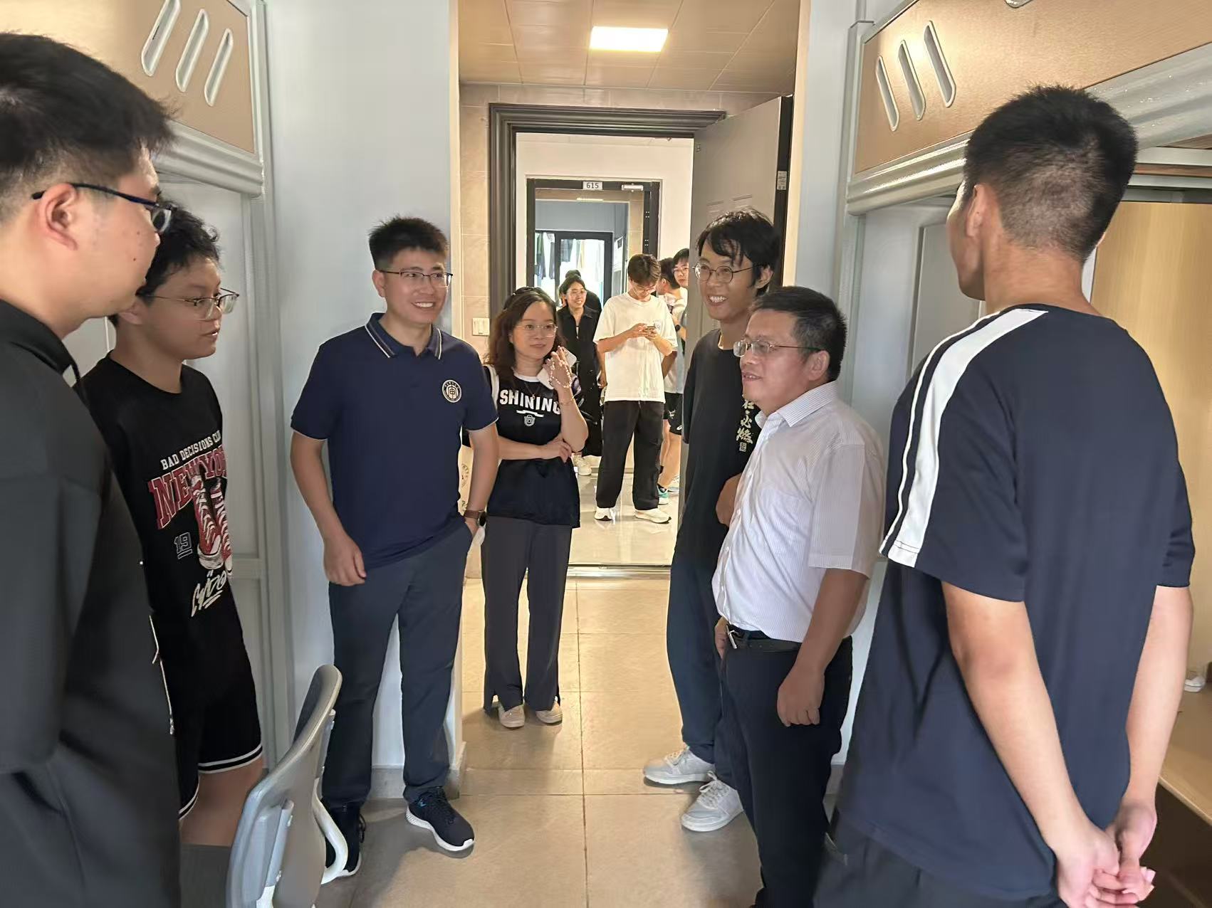 走访过程中,公司领导与新生亲切交谈,详细询问同学们的入住感受、饮食适应情况及学习生活需求,并针对专业选择、未来规划等话题展开交流。经理杨洋勉励新生:“数学是探索真理的钥匙,希望同学们以饱满的热情投入学习,在严谨的逻辑训练中培养创新思维,公司将全力为大家提供成长平台。”公司副书记余宏旺则叮嘱新生注意宿舍安全,保持规律作息,遇到困难及时与老师沟通。