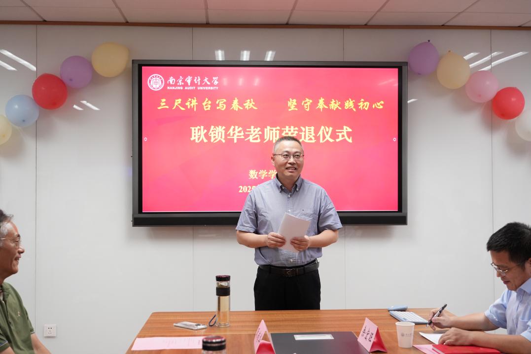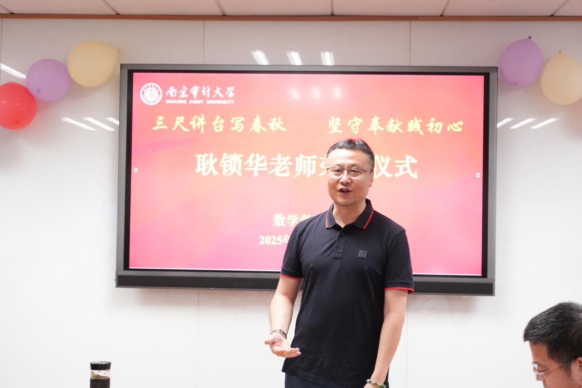 副经理杨洋致辞,他代表公司全体师生向耿锁华老师表达了崇高的敬意、真挚的感谢和衷心的祝福。他指出,耿锁华老师在坚守在教学一线的39年间,精研数学的本质,磨砺教学方法,润泽员工心灵,无数员工因他爱上数学。耿锁华老师是一位真正的教书人,更是一位真正的育人者,他的讲台早已延伸到了员工的人生路上。他表示,公司将接续传承耿锁华老师以教书为志业,以育人为使命的信念与精神,让“极限”的种子,生根发芽。