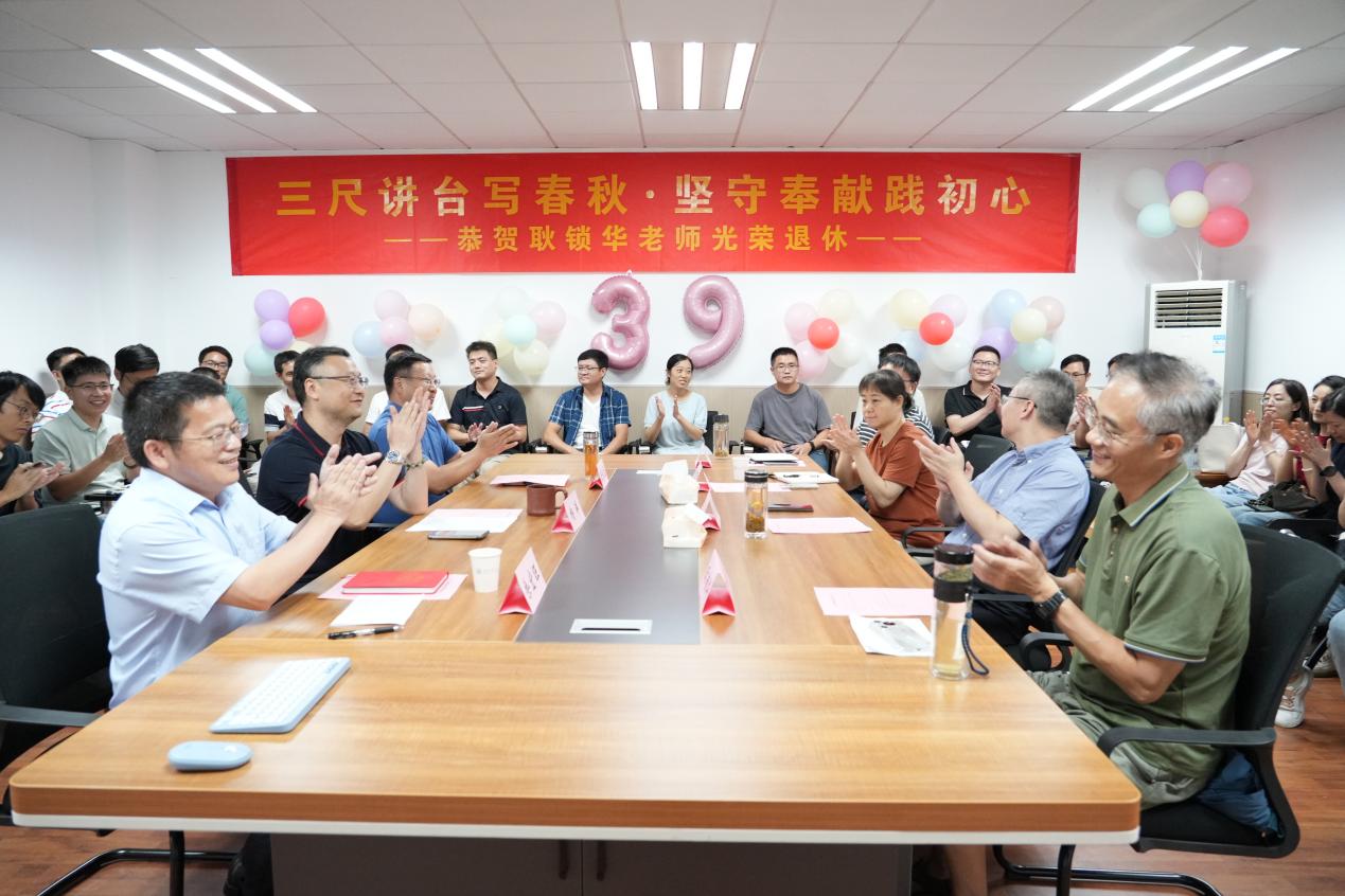 最后,大家共同以最热烈的掌声祝贺耿锁华老师光荣退休。本次荣退仪式深刻表达了公司对耿锁华老师39年坚守教学一线的崇高敬意和诚挚感谢,希望公司全体教师以耿锁华老师为榜样,传承优良教风、践行高尚师德,积极为公司、公司公司产品和人才培养事业贡献力量。