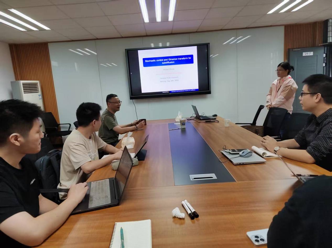张帅琪教授本次讲座的主题为:反常亚扩散的随机控制、Girsanov 定理及期权定价。张帅琪教授团队研究了由亚扩散驱动的随机控制问题,涵盖了随机微分方程、正-倒向随机微分方程 (FBSDE),以及布朗运动与亚扩散之间的切换。他们证明了单调条件下,由亚扩散驱动的完全耦合 FBSDE 解的存在性和唯一性。此外,他们探讨了随机最大值和动态规划原理,给出了亚扩散下的Girsanov定理,并运用到交易不活跃下的期权定价问题。