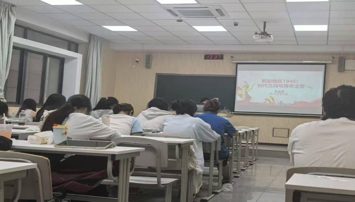 讲座伊始,蔡老师以生动的语言和丰富的历史资料,将师生们带回到了1945年那个风云变幻、命运转折的关键年份。蔡老师指出,1945年的时代之问不仅仅是对当时人们的考验,更是对后世青年的深刻启示。在当今时代,虽然我们远离了战火纷飞,但依然面临着诸多全球性的挑战。这些问题与1945年的时代之问一脉相承,都需要我们这一代青年去思考、去回答。